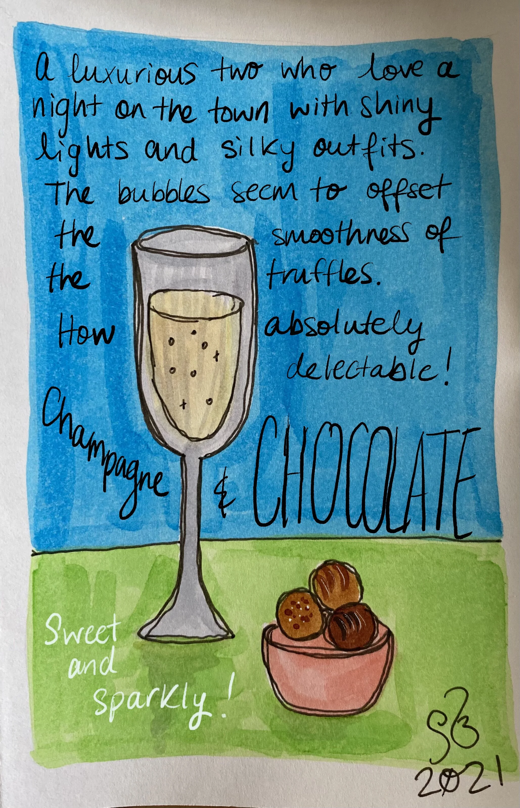 B. Tatangelo, Delightful Pairings, marker with pen and ink, 3”x4.5”, 2021, zine